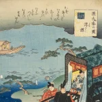 かの明石の舟、この響きにおされて過ぎぬることも聞こゆれば、知らざりけるよとあはれに思す。神の御しるべを思し出づるも、おろかならねば、いささかなる消息をだにして心なぐさめばや、なかなかに思ふらむかし、と思す。御社立ちたまて、所々に逍遥を尽くしたまふ。難波の御祓へなど、ことによそほしう仕まつる。堀江のわたりを御覧じて、
