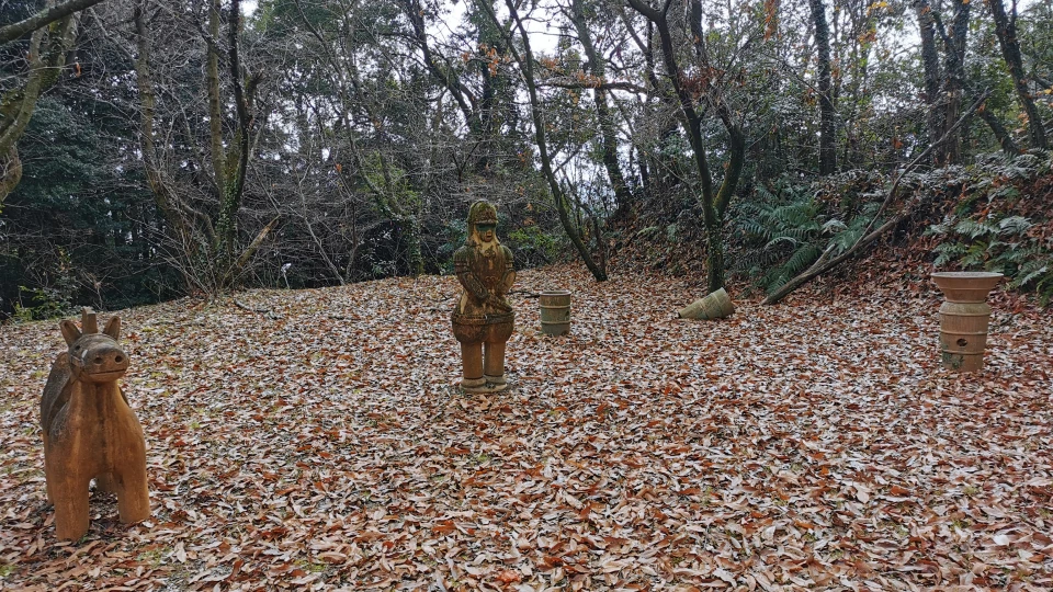 木の丸殿跡への散歩道を進んでいくと今度は、埴輪が置いてあるちょっとした広場があります。