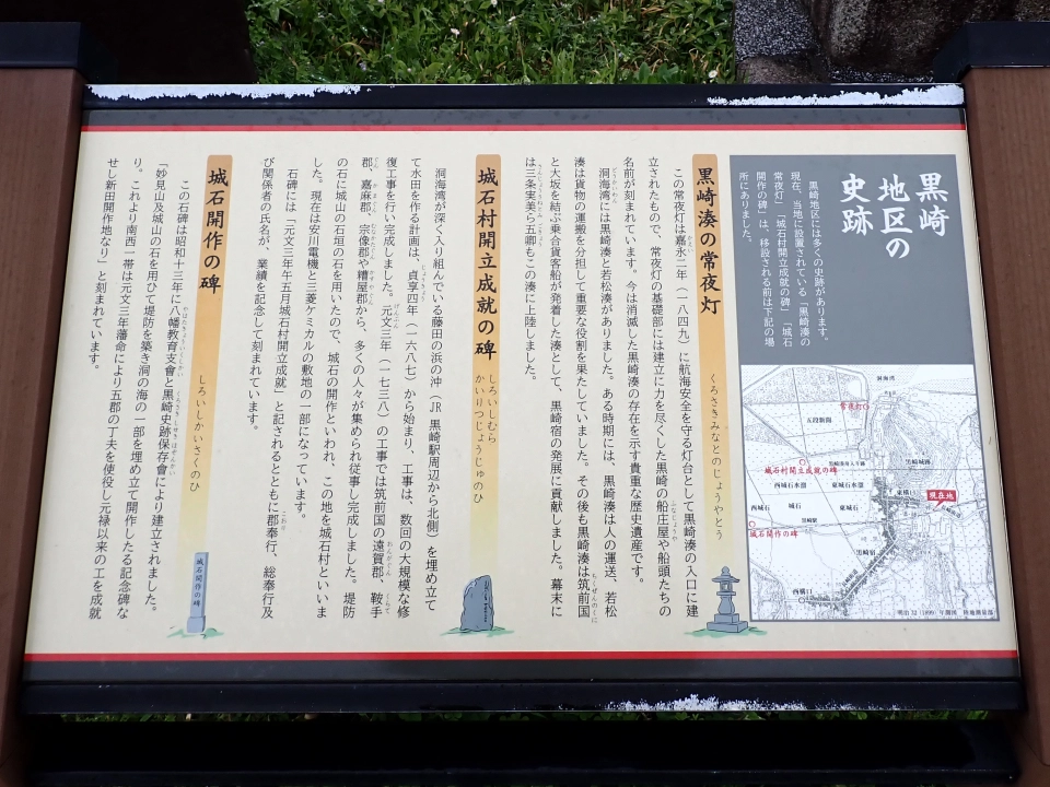 その後、城の南側になった堀を埋め、城下町から宿場町として再整備されたのが黒崎宿です。福岡藩では唯一の、上方への渡海船(乗合貨客船)が発着する港があり、小倉から来て筑前最初の宿場町であったことから、対馬と五島を除く九州西半の大名や多くの旅人に利用されました。