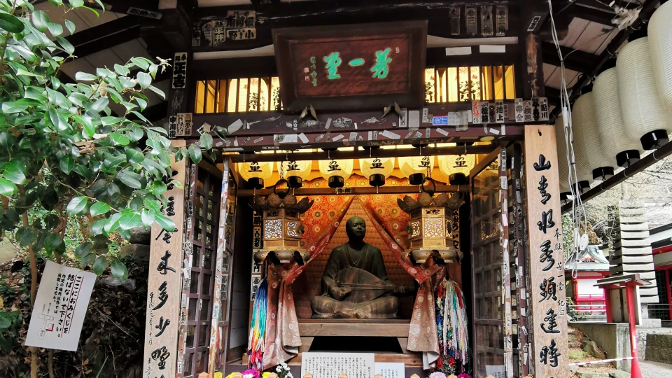 水天門をくぐり、本殿の左手の道を進むと芳一堂があります。赤間神宮は、『平家物語』を語る琵琶法師が平家の怨霊によって〇〇されるグロ系ホラー、『耳なし芳一』の舞台なのです。芳一堂の向かいには宝物殿があり、長門本平家物語や平家琵琶など貴重な資料が展示されています。等身大の安徳天皇尊像は、自分の息子がこんな運命だったらと、涙が出そうになりました。拝観料は100円。写真撮影禁止なので、自分の目でしか見ることできません。ぜひ宝物殿も入ってほしいです。